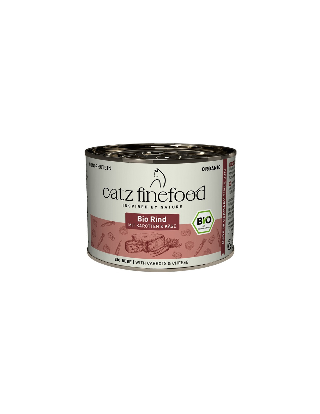 Zrównoważona receptura z gatunku Catz Finefood Bio jest idealnie dopasowana do potrzeb kotów. Wszystkie składniki są certyfikowane ekologicznie i wolne od GMO.