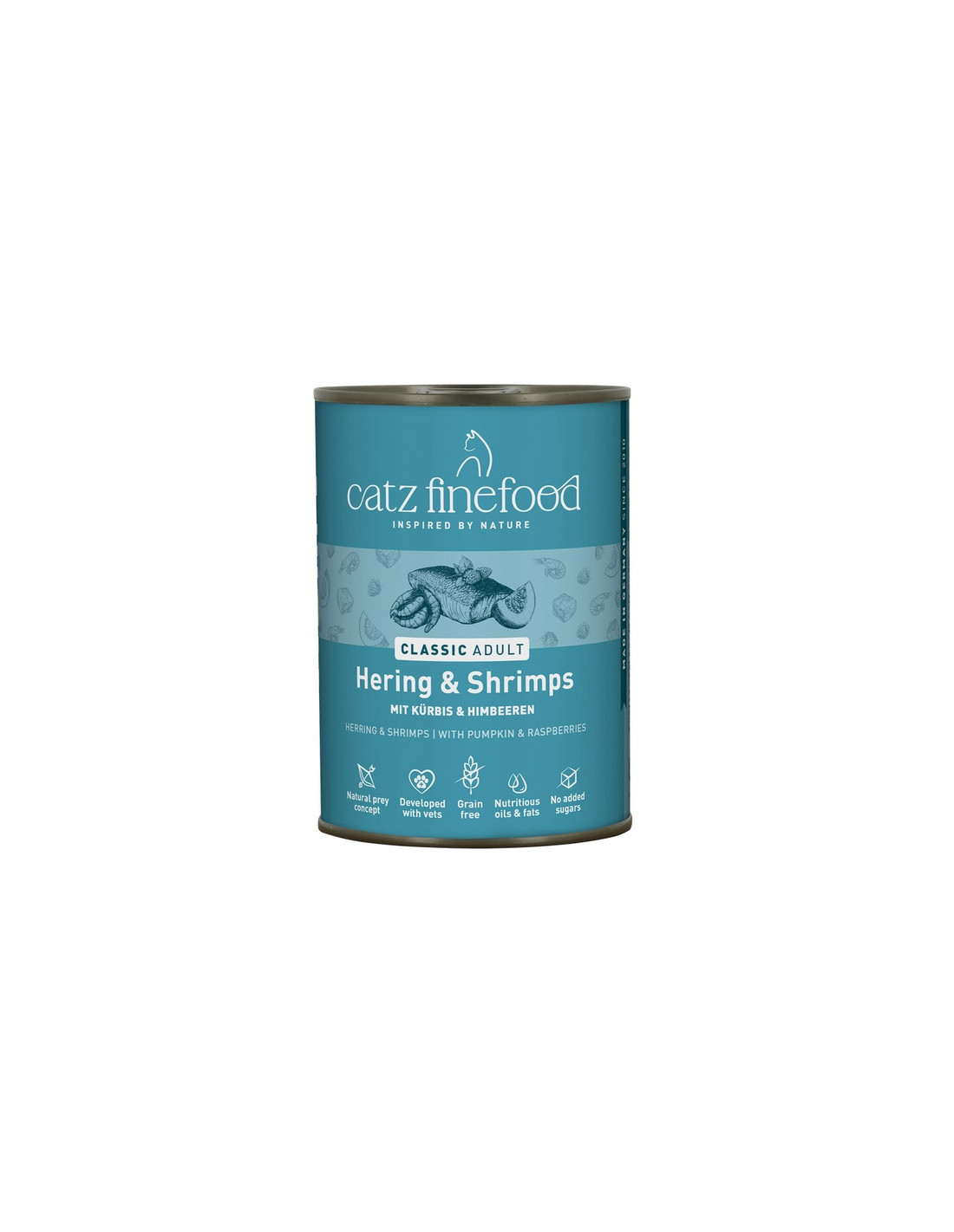 Specjał dla kotów – wartościowa karma dla naszych pupili. Catz finefood N°13 zawiera dużo delikatnego śledzia, krewetek oraz zdrowe dodatki, jak dynia i aloes. Bez konserwantów, barwników i wzmacniaczy smaku. Nie zawiera GMO. Mmmmiau!