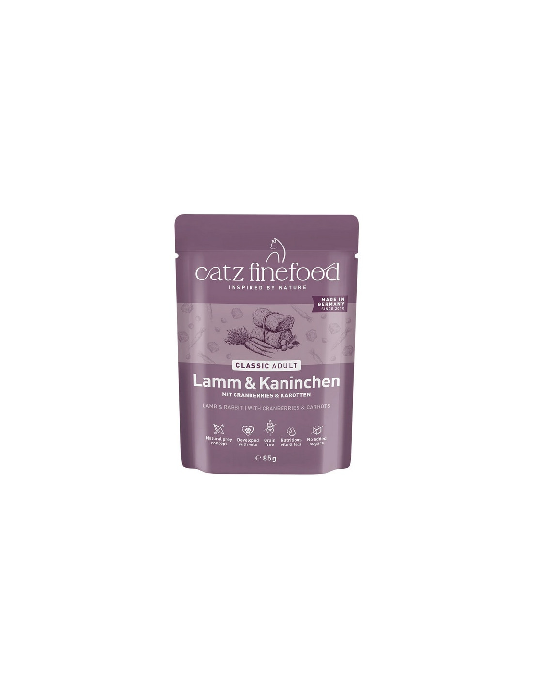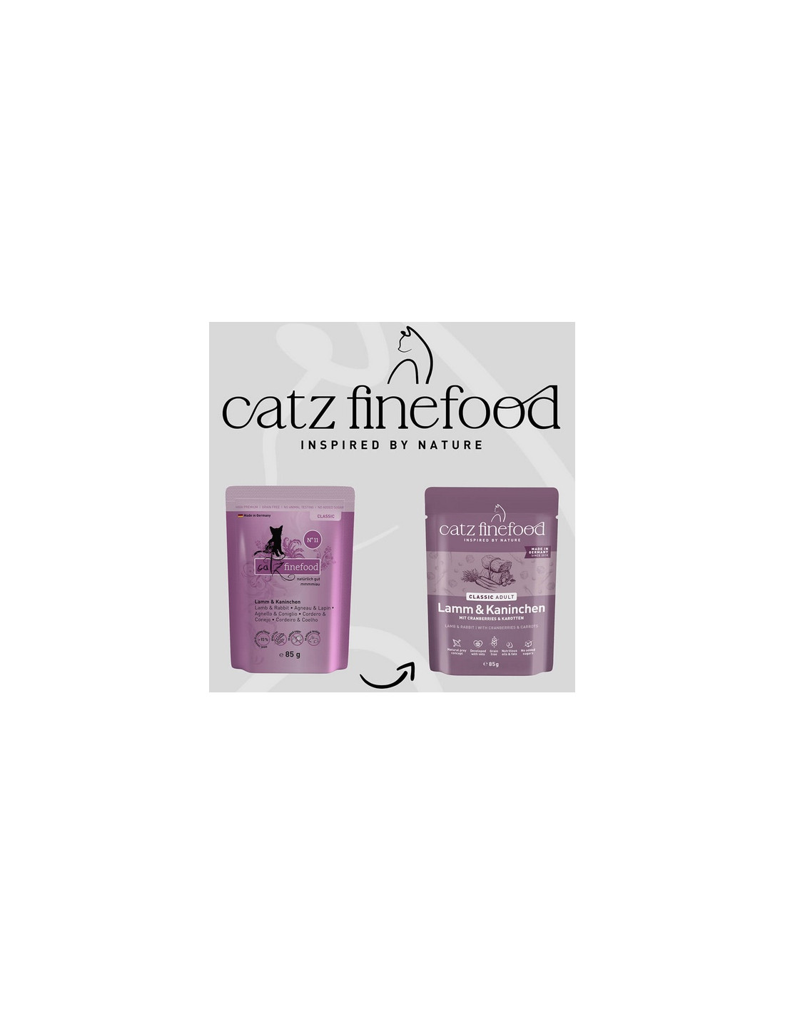 Specjał dla kotów – wartościowa karma dla naszych pupili. Catz Finefood N°11 zawiera dużo delikatnej jagnięciny, królika oraz zdrowe dodatki, jak żurawina i marchew. Bez konserwantów, barwników i wzmacniaczy smaku. Nie zawiera GMO. Mmmmiau!