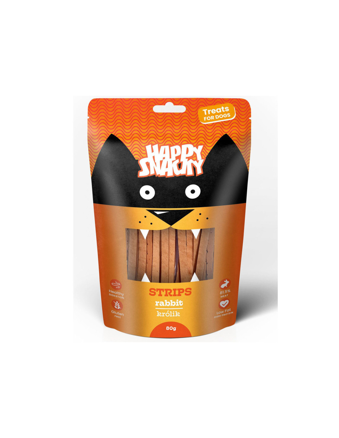 Paski z królika to przysmak w formie podłużnych miękkich pasków z mięsa królika. Długość jednego paska to około 11 cm. Smakołyk zawiera dużo mięsa. Doskonały sposób na nagradzanie psa, zalecany dla psów każdej wielkości. Smaczny i pożywny przysmak dla psa stanowiący doskonałe uzupełnienie codziennej diety naszego pupila.