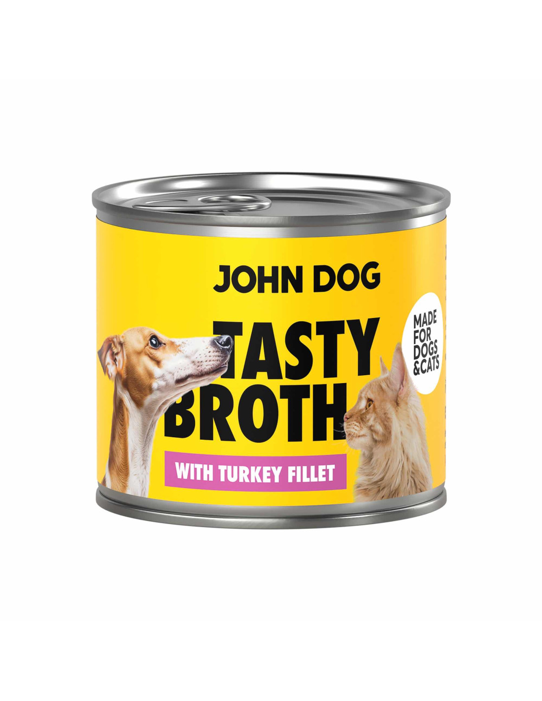 John Dog Tasty Broth to zupa w formie aromatycznego bulionu z indykiem, stworzona z myślą o dorosłych kotach i psach wszystkich ras. To monobiałkowa i bezzbożowa formuła, która zawiera aż 85% delikatnego bulionu oraz 15% wysokiej jakości mięsa mięśniowego w postaci fileta z indyka, tworząc idealną kompozycję dla wymagających czworonogów.