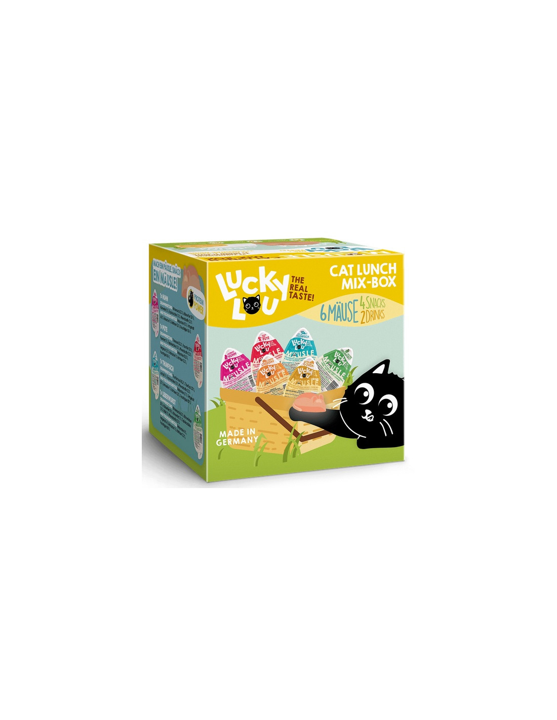 Realizując naszą misję stworzenia najlepszej na świecie karmy dla kotów, stworzyliśmy kolejny rozkoszny przysmak: przekąskę w kształcie myszy. Świetnie, prawda? Najlepszy pasztet o naprawdę najlepszym smaku Lucky Lou. Ze względu na kuszący kształt myszy, koty nie mogą powstrzymać się od podchodzenia do niej, aby ją zbadać i skubać. Mäusle są po prostu pyszne!