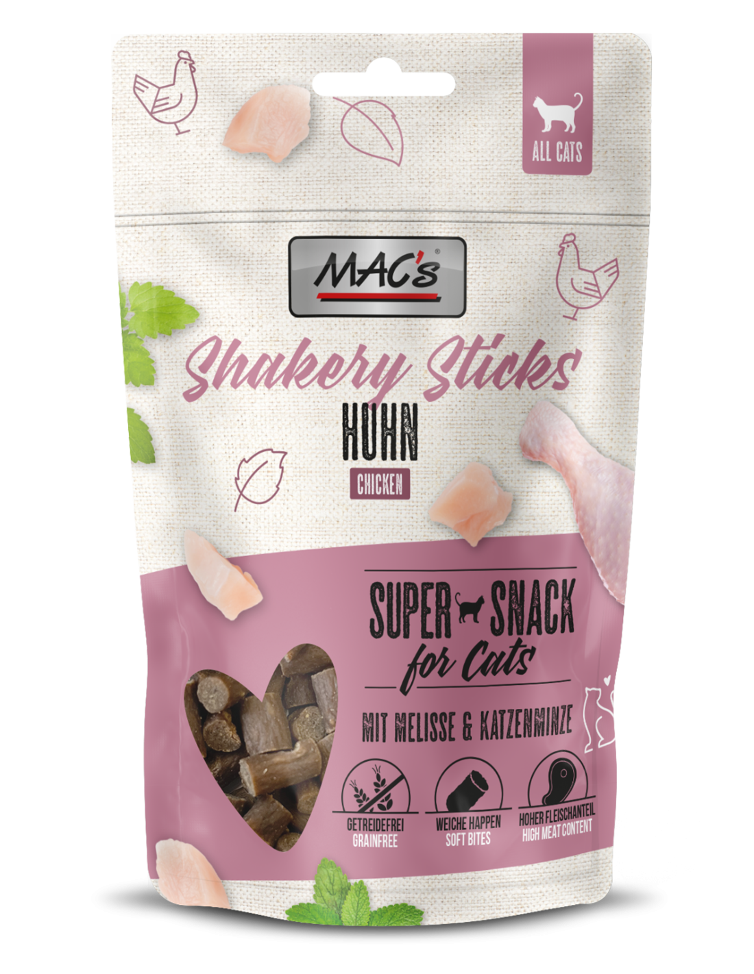 Shakery Chicken Sticks firmy MAC to idealne rozwiązanie dla kocich przyjaciół, którzy uwielbiają drób! Pełne świeżego mięsa, te bezzbożowe pałeczki idealnie nadają się jako nagroda, jako urozmaicenie diety lub jako smaczna przekąska. Dobroczynne superfoods, melisa lekarska i kocimiętka, wspomagają trawienie i działają uspokajająco, pomagając Twojemu futrzanemu przyjacielowi radzić sobie z codziennymi wyzwaniami i stresującymi sytuacjami. To naprawdę super przekąska dla Twojego kociego towarzysza!