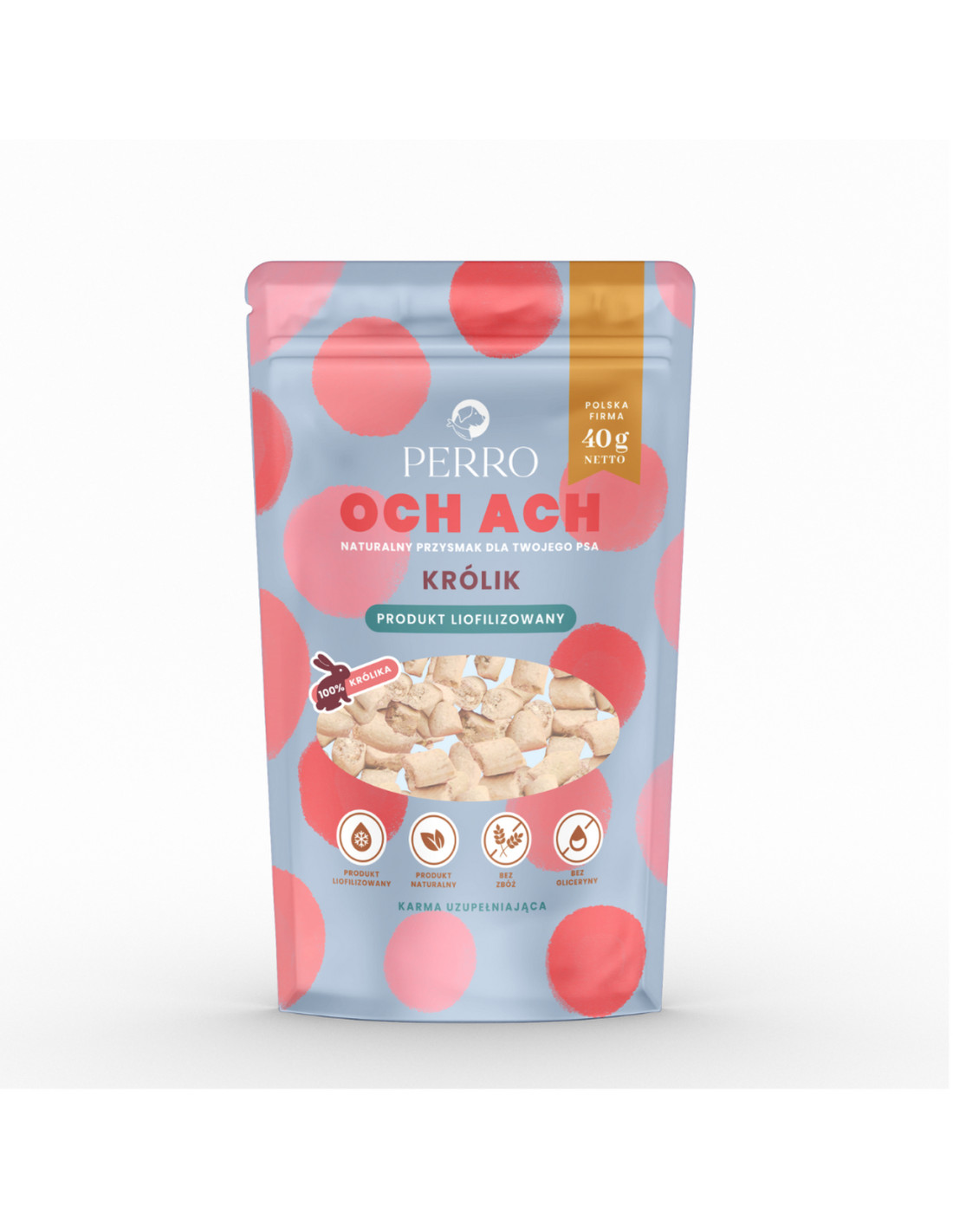 Liofilizowane przysmaki OCH ACH dla wszystkich czworonożnych przyjaciół, dla których głębia smaku to sedno sprawy w motywacji treningowej, sprawianiu przyjemności, a jednocześnie definicja szczęścia.